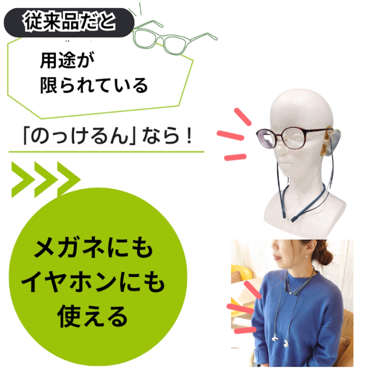 補聴器・メガネ・イヤホンの紛失・落下防止ストラップ|のっけるん