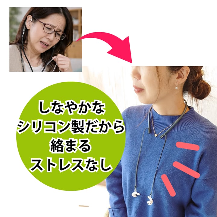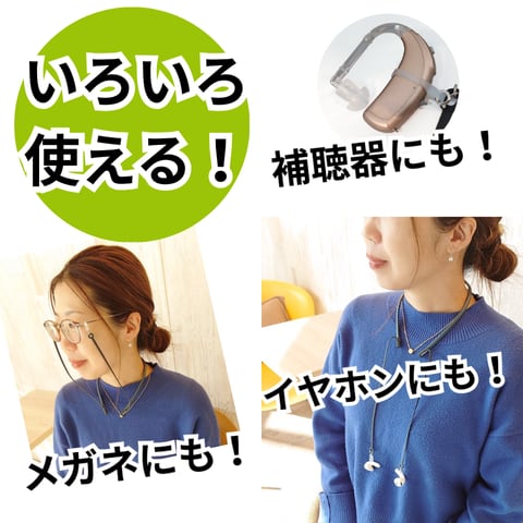 ※本製品は、補聴器やワイヤレスイヤホン、メガネの落下防止・落下低減を目的としたストラップです。使用中の紛失や破損については、当社では責任を負いかねますのでご了承ください。